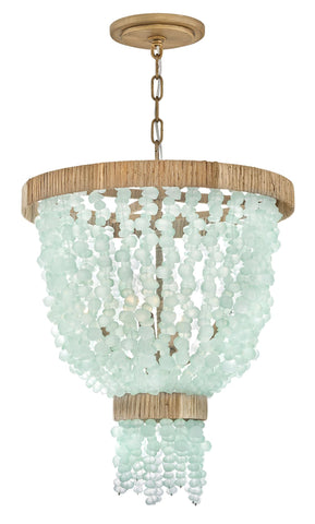 DUNE'S BOHEMIAN CHIC DESIGN SHOWCASES STRANDS OF SOFT SEA GLASS COMBINED WITH A BURNISHED GOLD FINISH.