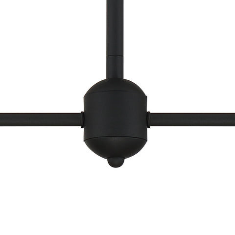 THE FIXTURE COMBINES THIN, ANGULAR ARMS WITH WHITE GLASS SHADES FOR A MODERN TOUCH, EASILY INCORPORATED INTO VARIOUS ROOMS AND DESIGN STYLES.