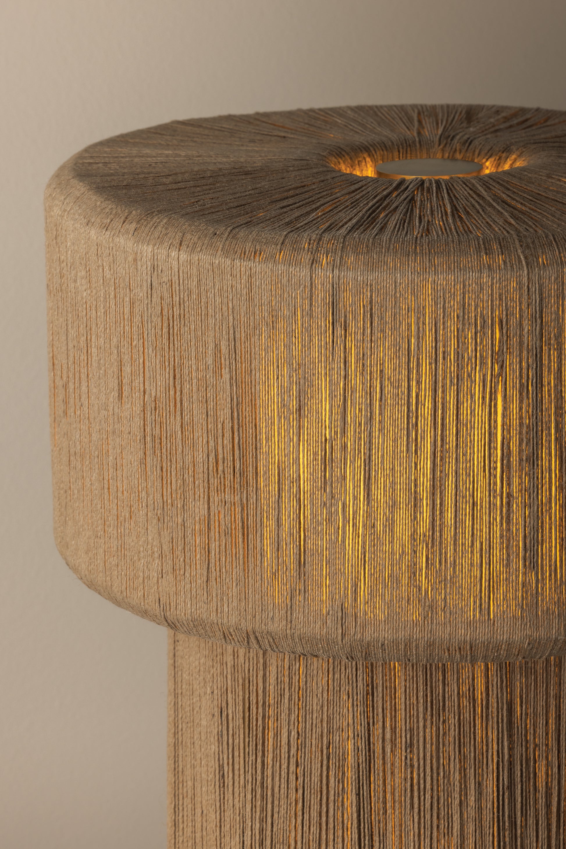 A TEXTURAL STATEMENT PIECE, THE KENAI TABLE LAMP FEATURES BOLD PROPORTIONS AND AN INTRICATE ALL-OVER STRING CONSTRUCTION.