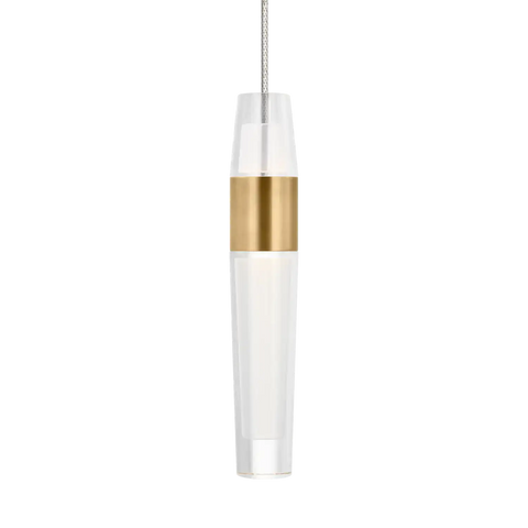 DELICATE NATURAL BRASS ARMS COME FROM THE CENTRAL HUB TO THE LASER-ETCHED CRYSTAL TUBES.