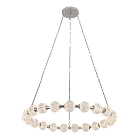METICULOUSLY CUT SPHERICAL SHADES CREATE GLITTERING BEAMS OF ILLUMINATION THROUGHOUT THE DESIGN.