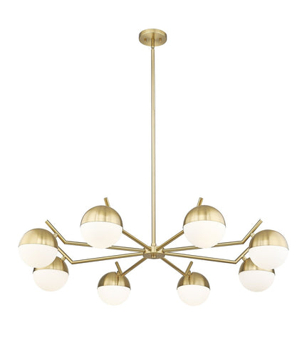IT DELIVERS RICH WARMTH WITH A MODERN GOLD FINISH, AND INCLUDES THREE ORB SHADES OF MATTE OPAL GLASS FOR SOFT, INVITING ILLUMINATION.
