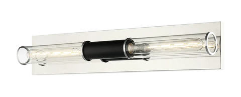 IT INCLUDES AN ELEGANT THIN CANOPY WITH 2 FINISH COMBINATIONS PAIRED WITH A CLEAR GLASS SHADE.